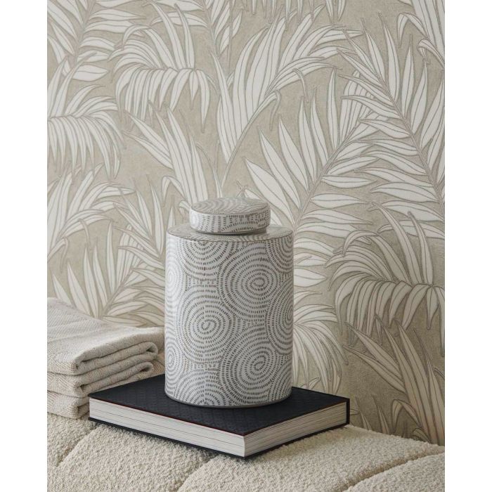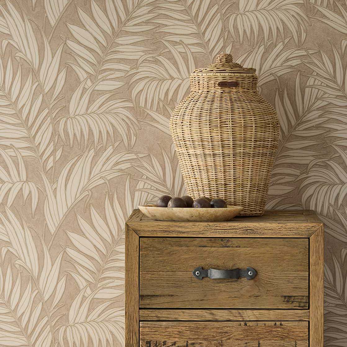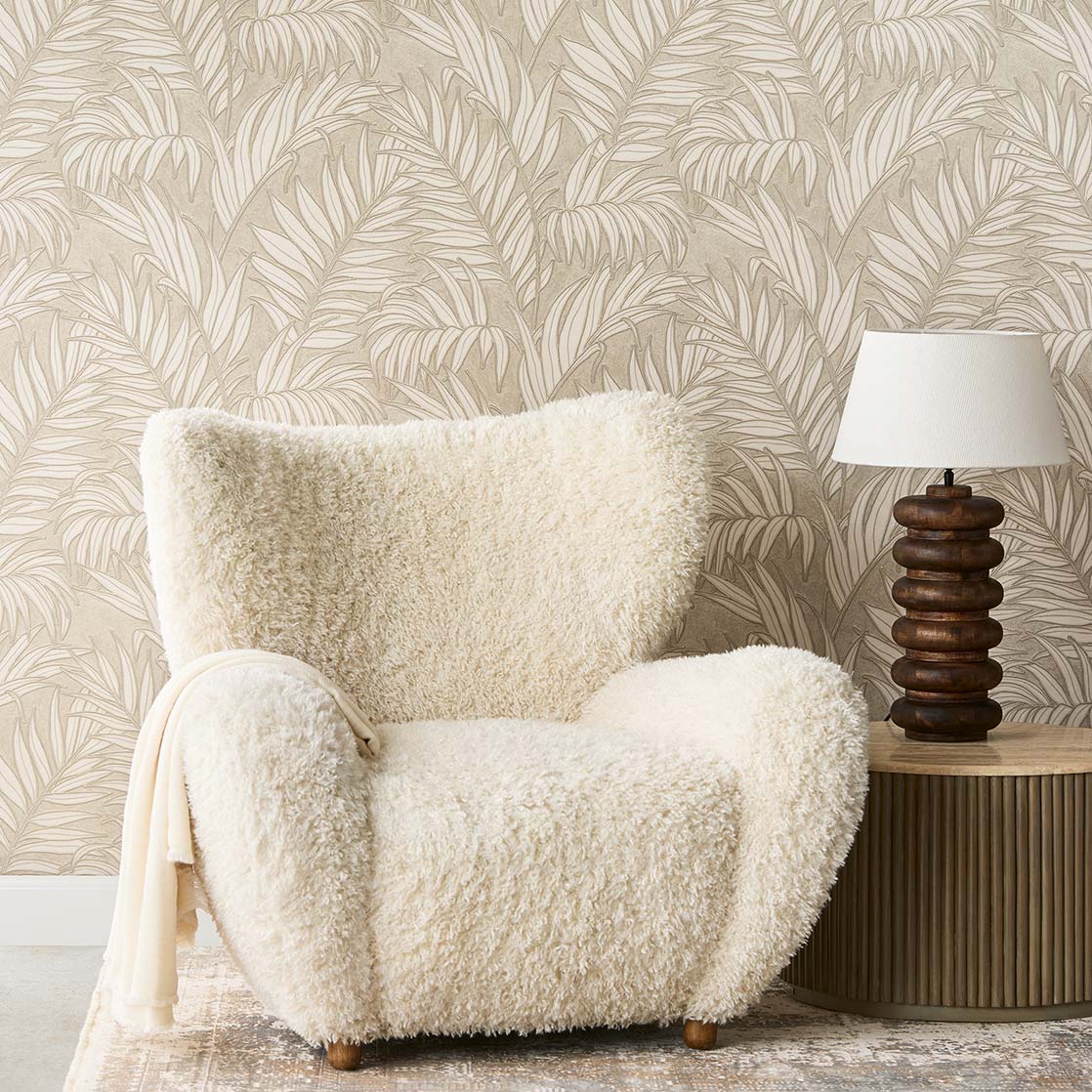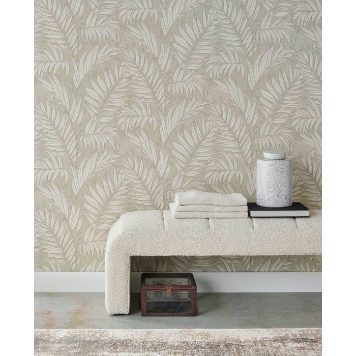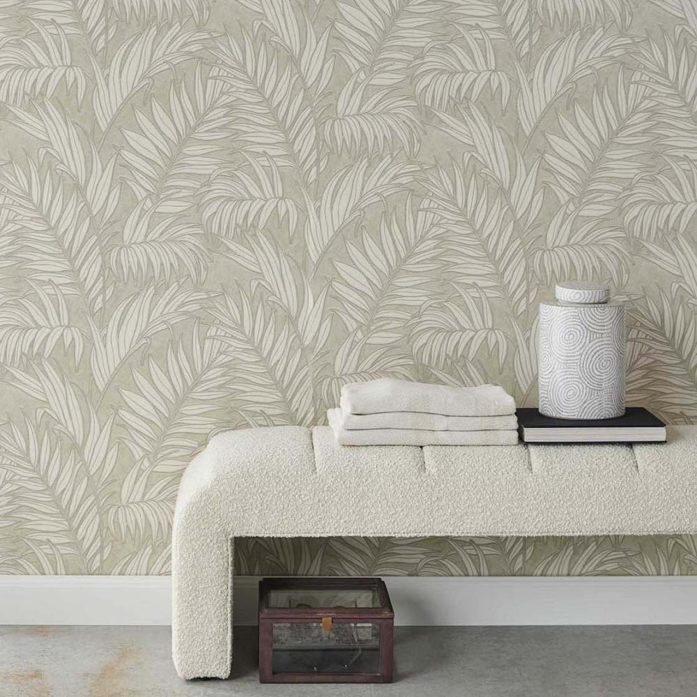 A refined tropical leaf motif with a soft mix of matte and subtle sheen bringing relaxed, natural elegance to bedrooms, living rooms and welcoming hallways—calm from afar, richly textured up close.