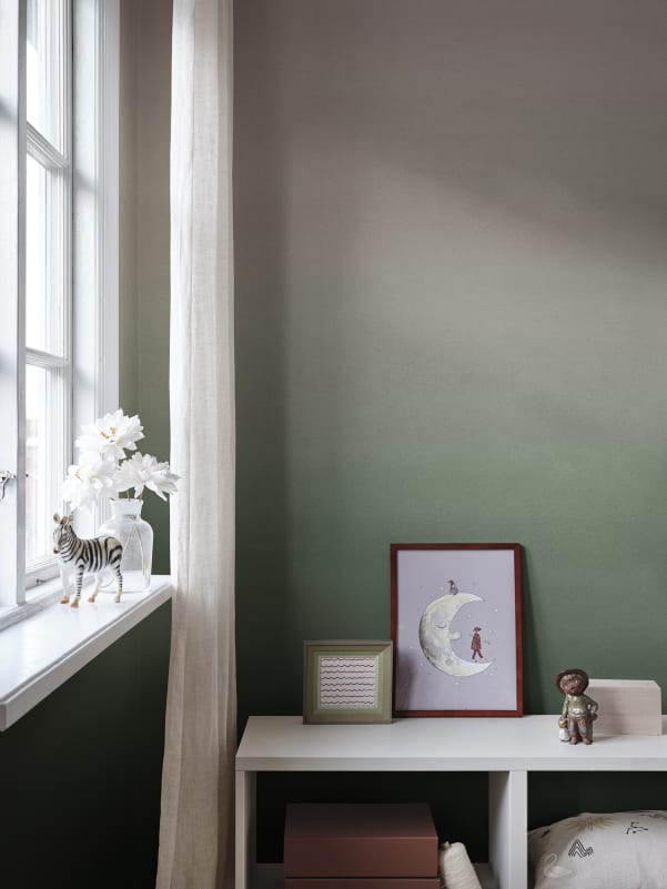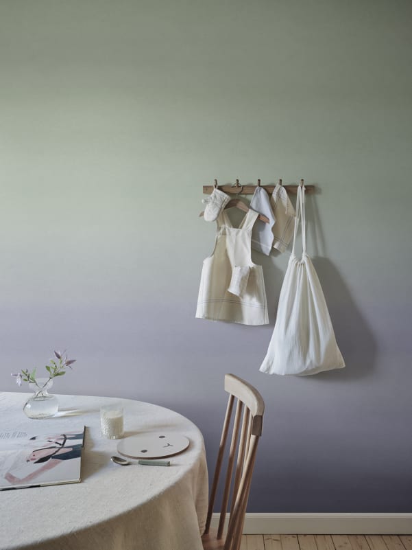 Soft, architectural calm. Skymning is a serene gradient mural that creates a gentle horizon across the wall, shifting through tonal layers like twilight settling in. It gives you the atmosphere of a painted wall, but with Sandberg’s precision and a refined matte finish. Perfect for bedrooms, living rooms, studios, hallways, and anywhere you want the room to feel quieter and more expansive.