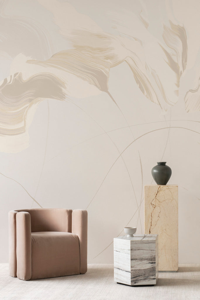 Atmospheric sweeps of paint drift like first light across the sky. Aurora is a large-scale mural that turns a wall into an artwork—soft, luminous, and quietly dramatic.